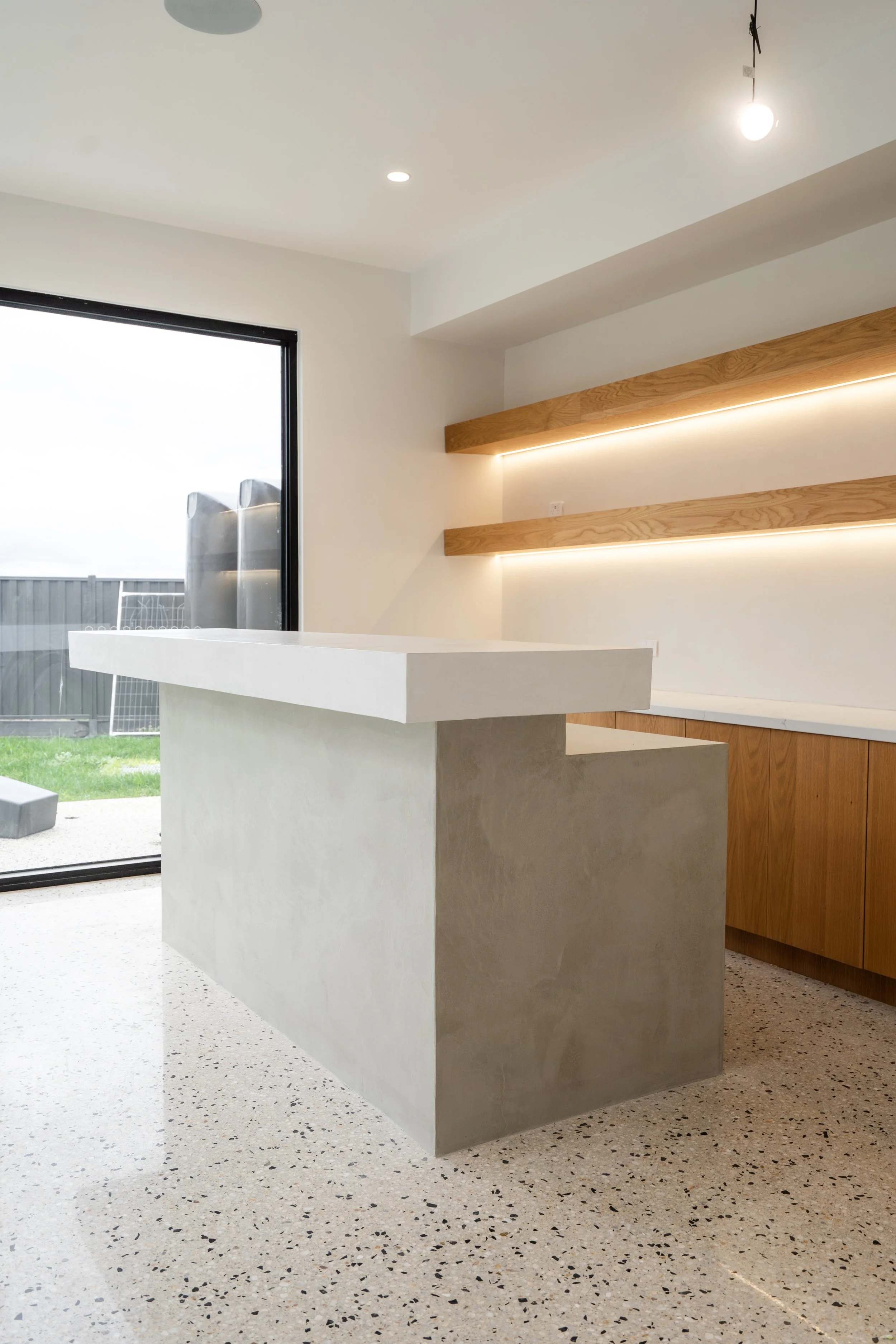 Our custom tables are crafted with a solid core, then rendered and finished in microcement or concrete-effect coatings to achieve a raw, architectural aesthetic. Offering a refined alternative to natural stone, they deliver similar visual impact at a more accessible cost, while being fully sealed for durability, strength, and everyday household use, seamlessly complementing modern interior design.